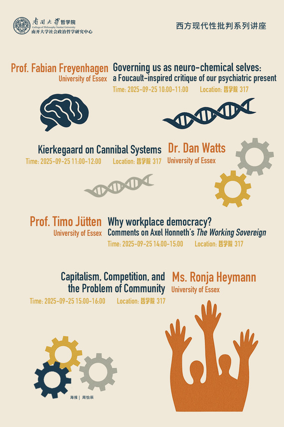 1 题目 Why workplace democracy? Comments on Axel Honneth’s The Working Sovereign 2 主讲人 Prof. Timo Jütten (University of Essex) 3 主持人 宋德超(南开大学) 4 时间 2025-09-25 14:00-15:00 5 地点 哲学院317 6 摘要 In this talk, I evaluate Axel Honneth’s argument for workplace democracy in his recent book, The Working Sovereign(2025). Honneth discusses three criticisms of labour relations based on estrangement (or alienation), autonomy, and democracy, and argues that the democracy argument is the most compelling. On this basis, he argues that there is a strong normative case for introducing democracy in the workplace. While I am sympathetic to this argument, I suggest an alternative justification that is closer in spirit to the critique of labour relations found in Marx’s work and in Frankfurt School critical theory. I call this approach “democracy against alien power.” Its basic idea is that the impetus for the democratic organisation of work comes from the joint activity of working together and the challenges that this activity poses. It arises as a reaction to negative experiences of heteronomy, powerlessness, and a loss of comprehension and meaning.