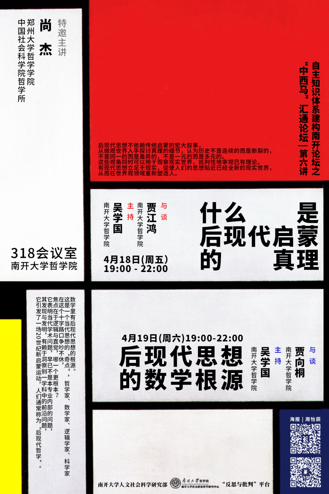 讲座回顾丨自主知识体系建构南开论坛之“中西马”汇通论坛第六讲丨尚杰丨(一)什么是后现代启蒙的真理丨(二)后现代思想的数学根源