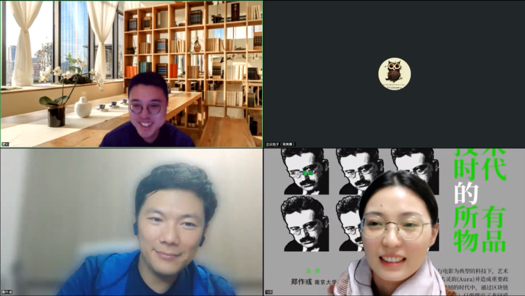 郑作彧老师首先介绍了基于NFT(非同质化代币)技术创作的艺术作品在当前的流行状况,并就此提出一个反思性问题:数字存取技术下的艺术作品拥有灵韵(Aura)吗?
