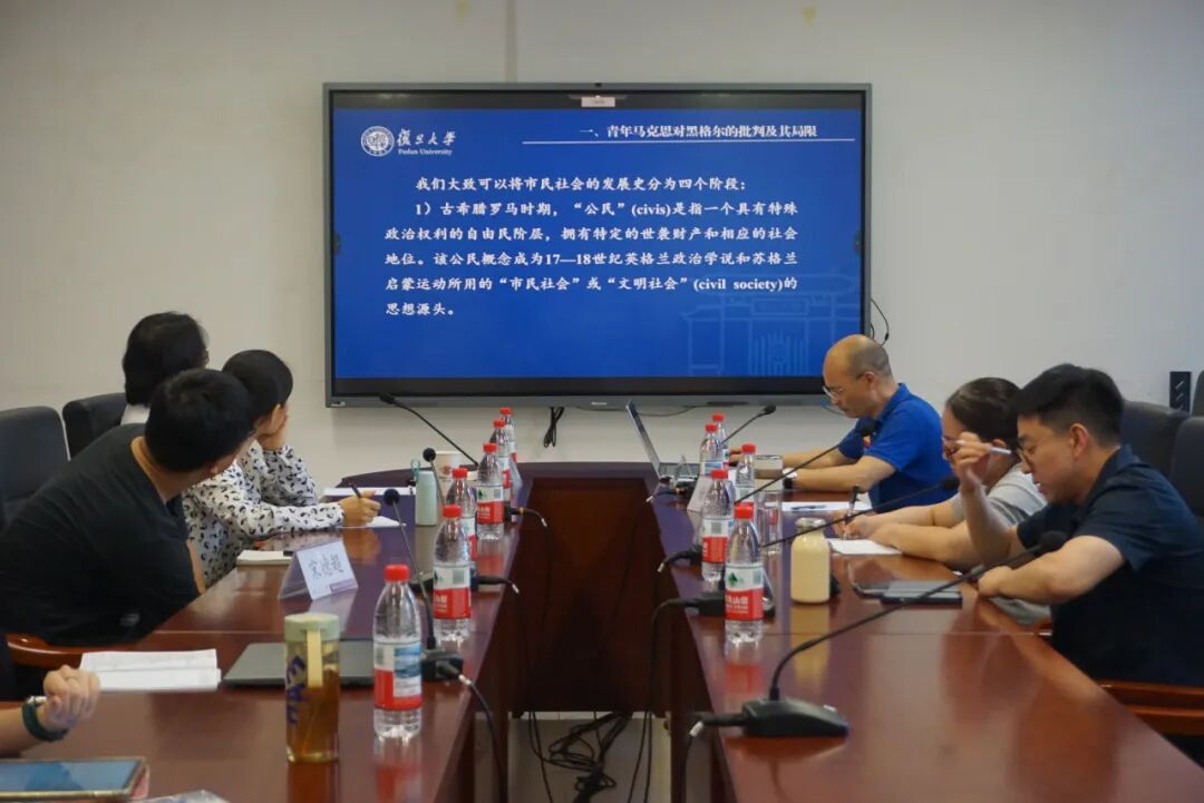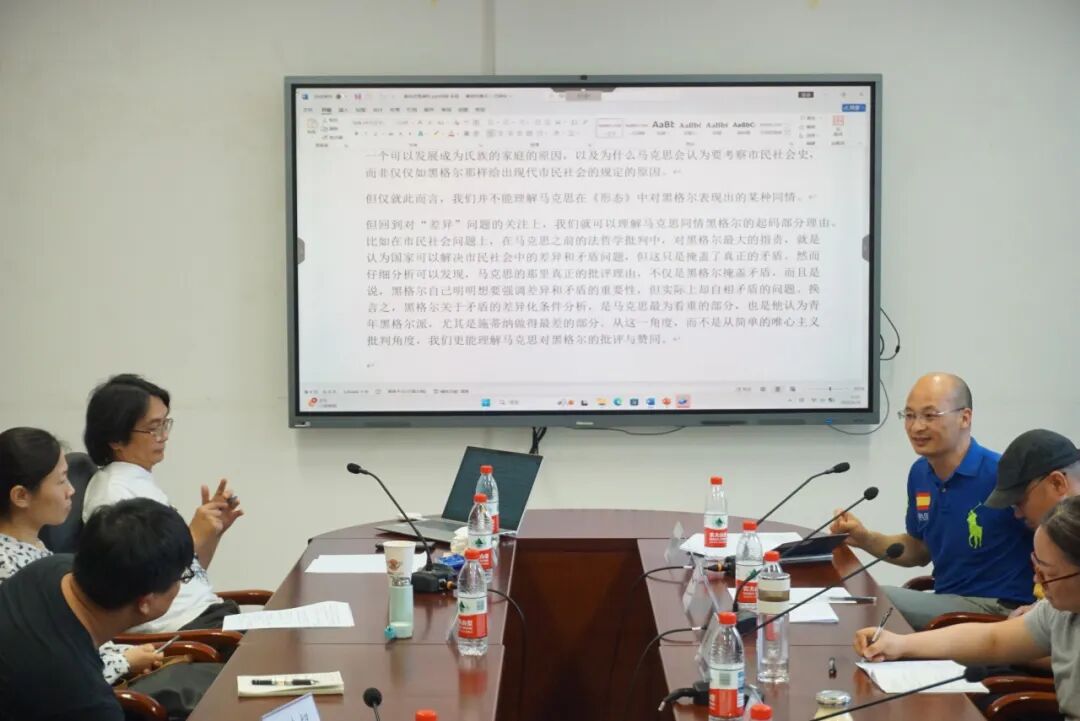 两位老师在“在黑格尔与马克思之间”的主题下进行了报告,张东辉老师的报告题目为“重思马克思的‘市民社会决定国家’”,余玥老师的报告题目为“意志还是感性——黑格尔与马克思实践客观性理解的关键差异”。两位老师就黑格尔与马克思的国家、市民社会与实践客观性等概念进行了辨析与交流讨论。