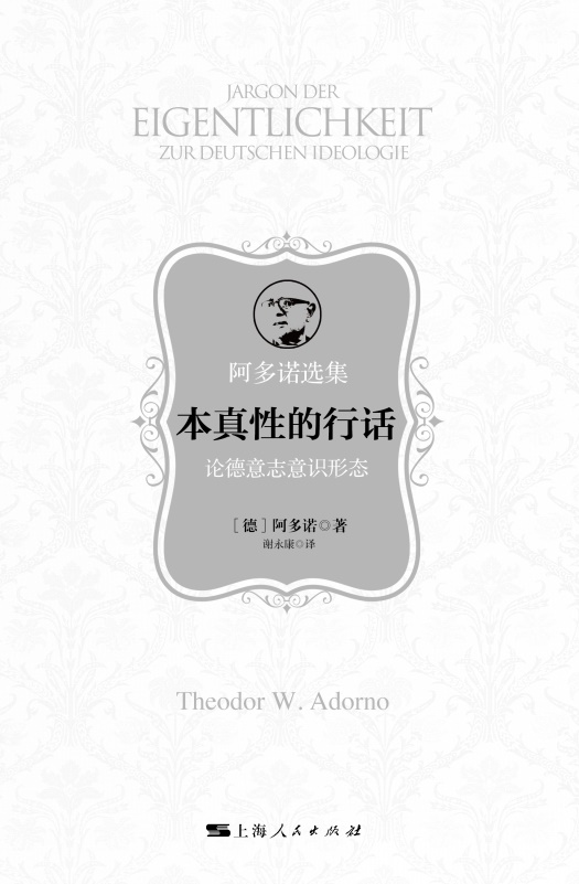 阿多诺(Theodor W. Adorno,1903—1969),德国著名的哲学家、美学家和社会学家,法兰克福学派第一代的主要代表人物,社会批判理论的理论奠基者。阿多诺一生著述甚丰,涉猎广泛,主要的著作有:《否定的辩证法》《美学理论》《文学笔记》《最低限度的道德》《启蒙辩证法》《新音乐哲学》《棱镜:文化批判与社会》等。