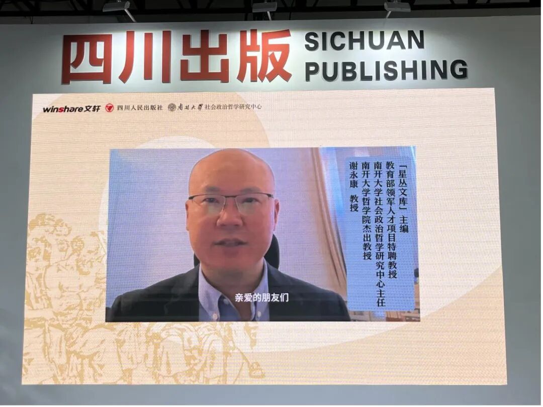 “星丛文库”主编,南开大学哲学院谢永康教授发表视频寄语。谢永康教授首先表达了对各界支持的感谢,并对文库的未来寄予厚望。他指出,“星丛”之名的寓意,在于承认思想世界的多样性与关联性——每一部经典、每一种理论都如一颗独特的星辰,它们彼此辉映、相互界定,共同构成人类精神的灿烂星空。文库的八大板块设计,正是试图绘制一幅引导学术探索的初步“星图”,其目的不仅是汇集文本,更是为了揭示思想之间的脉络与张力。