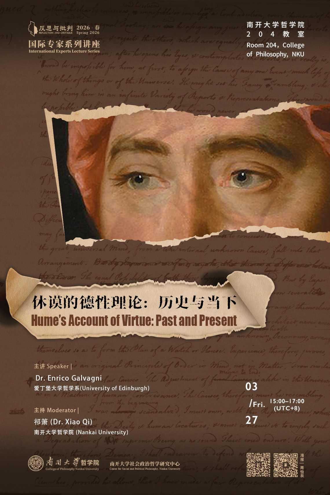 2026年3月27日下午,由南开大学哲学院、南开大学社会政治哲学研究中心主办的“2026年春‘反思与批判’国际专家系列讲座”在南开大学哲学院204室进行。